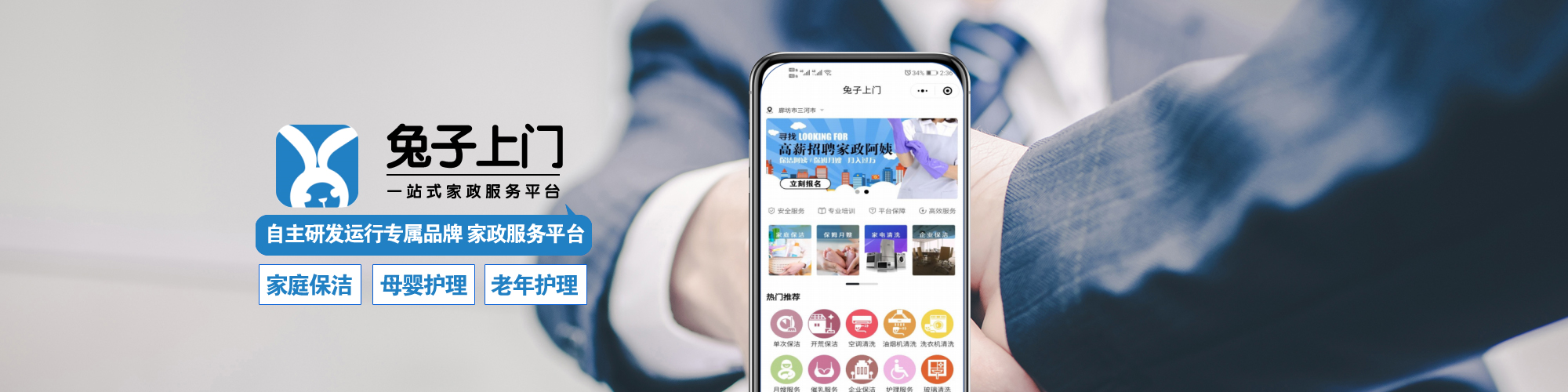 深耕于家政領域 ,打造自主品牌“燕京巧姐”,深受社會好評。以互聯網+模式,自主開發運營了一款線上家政服務平臺“兔子上門”,通過現代經營管理模式,打通線上線下各個環節,為客戶提供專業化、規范化、高品質、個性化的家政服務,為中國數萬家庭提供安全優質的家庭服務綜合解決方案,致力于成為中國家政冠軍品牌......